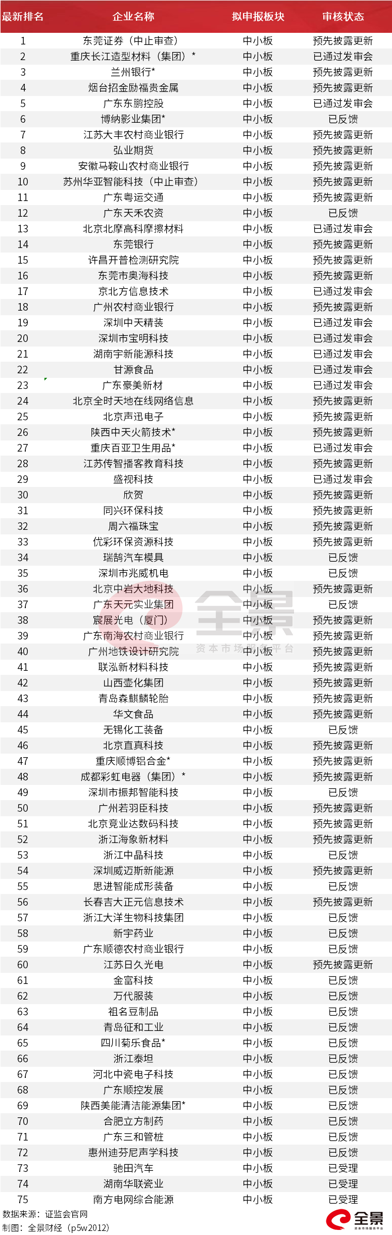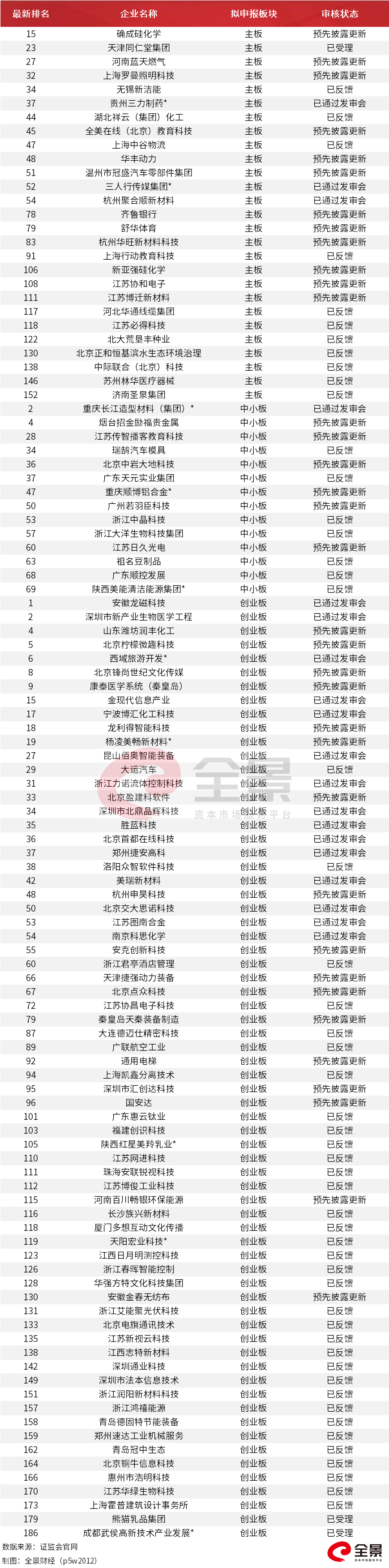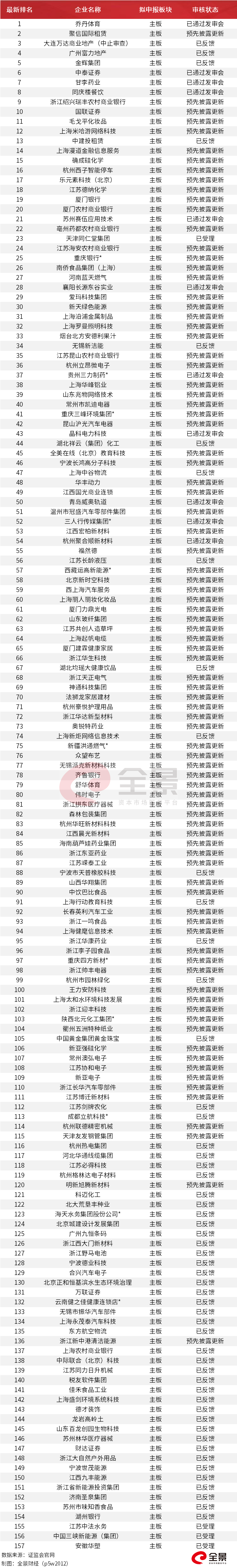 最新拟IPO企业排队名单