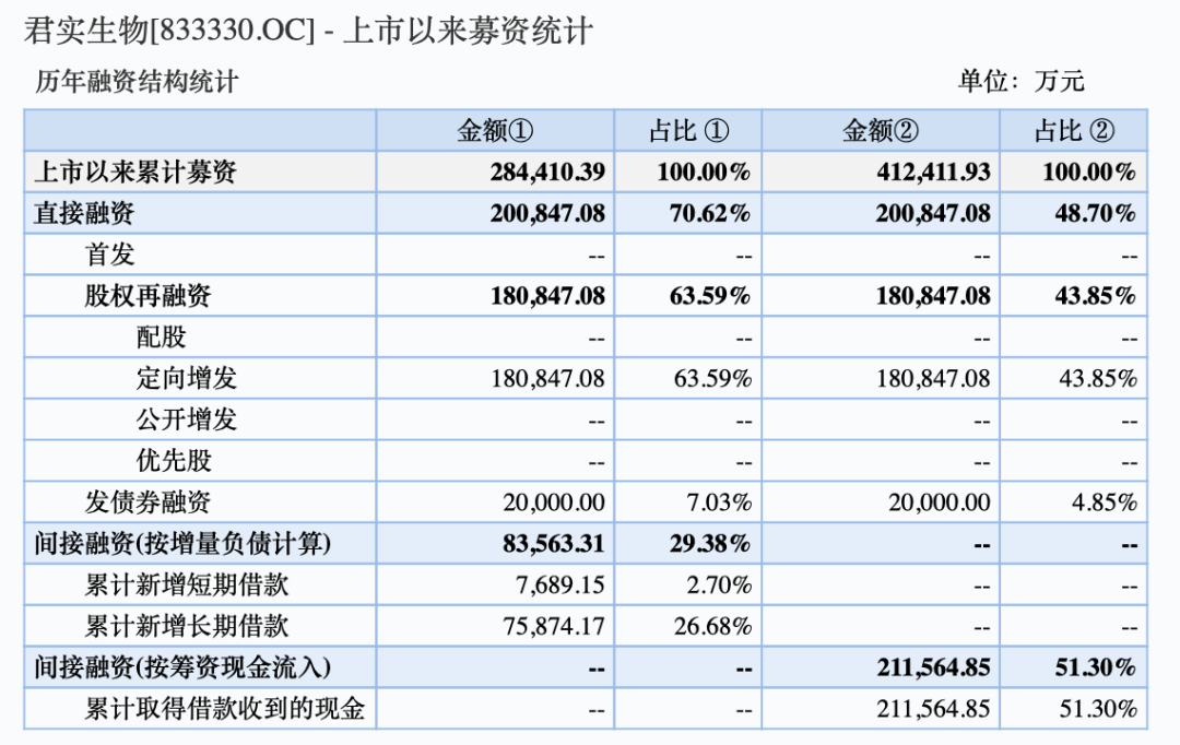 资料显示,君实生物早在2015年7月在新三板挂牌,并在新三板频频进行定增,一度被市场称为“新三板吸金王”,挂牌期间,其完成7次定增,募得资金18.08亿元,加上发债、间接融资等,累计募资达28.44亿元。